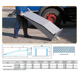 partie horizontale 500 mm hauteur 290 mm pente 950 mm capacité 12,000 kg